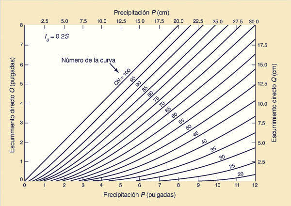 Fig. 1  La ecuación del número de la curva NRCS en forma gráfica.