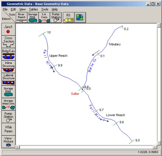 • The modeler develops the geometric data by first drawing in the river system schematic.