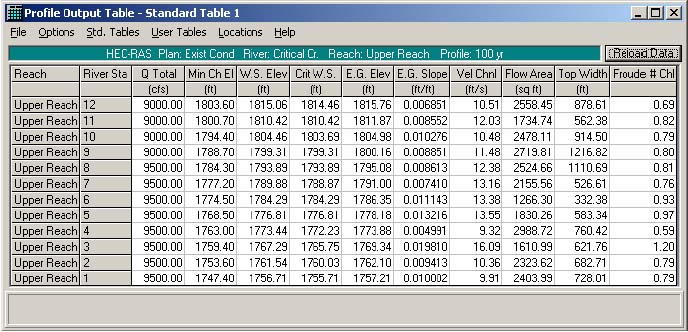 Figure 3.13   The HEC-RAS tabular detailed output.
