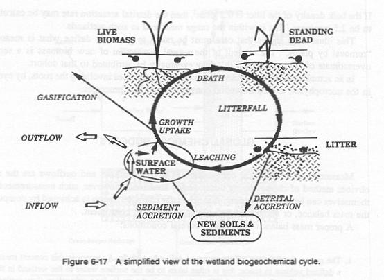 • Fig. 6-17 shows a simplified view of the wetland biogeochemical cycle.