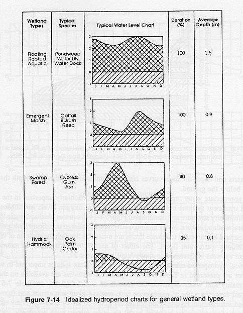 - Figure 7-14 shows idealized hydroperiod charts for general wetland types.