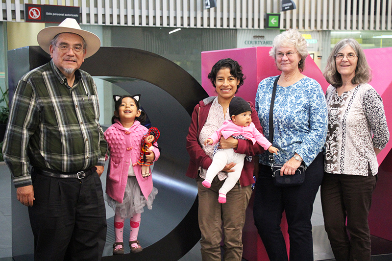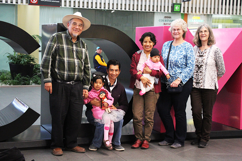 At the Mexico City airport: the Arratia family (Flor, Gustavo, Malinalli, and Rubi), Donna Tisdale, Carolyn Allen, and Dr. Miguel Ponce [160926]
