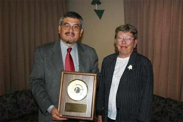 | Con mi colega Pat Huckle, al momento de recibir el premio "Outstanding International Scholar" otorgado por ΠΒΔ, San Diego, California, mayo de 2005. |