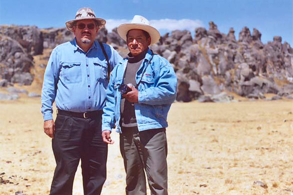 | Con Don Máximo Roque (Q.E.P.D.), primer guía del Bosque de Piedras, Huayllay, Pasco, agosto de 2005. |