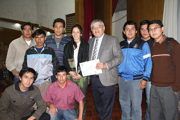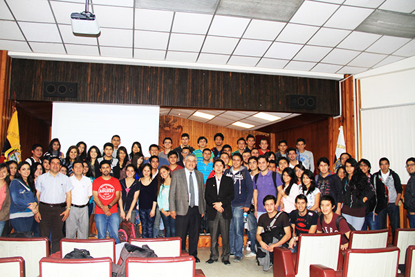 | Al final del curso de Hidrología, en la Universidad Técnica Particular de Loja, Ecuador, con el Dr. Fernando Oñate y los alumnos participantes, julio de 2014. |