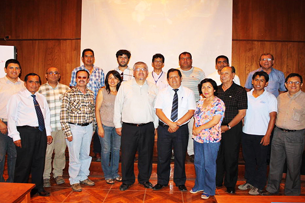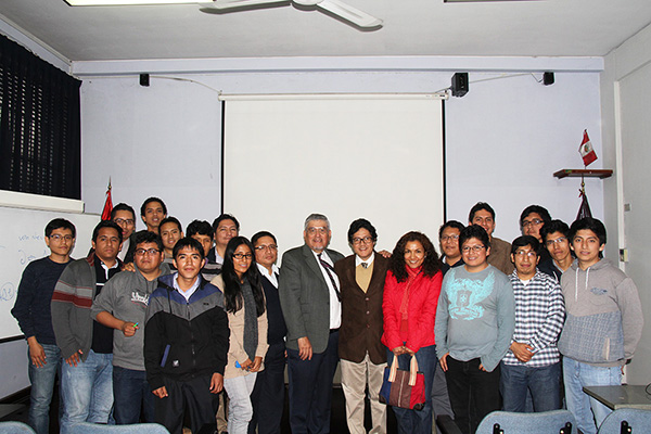 | Con estudiantes de la Escuela Profesional de Ingeniería Hidráulica, Universidad Nacional de Cajamarca, en ocasión del curso "Hidráulica Computacional," enero de 2014. |