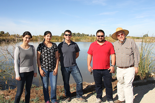 | Con un grupo de estudiantes de postgrado, en la visita a los humedales del Valle Imperial, California, diciembre de 2015. |