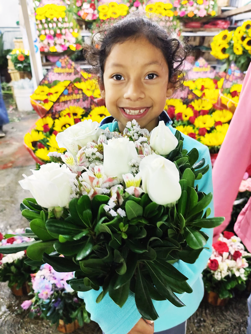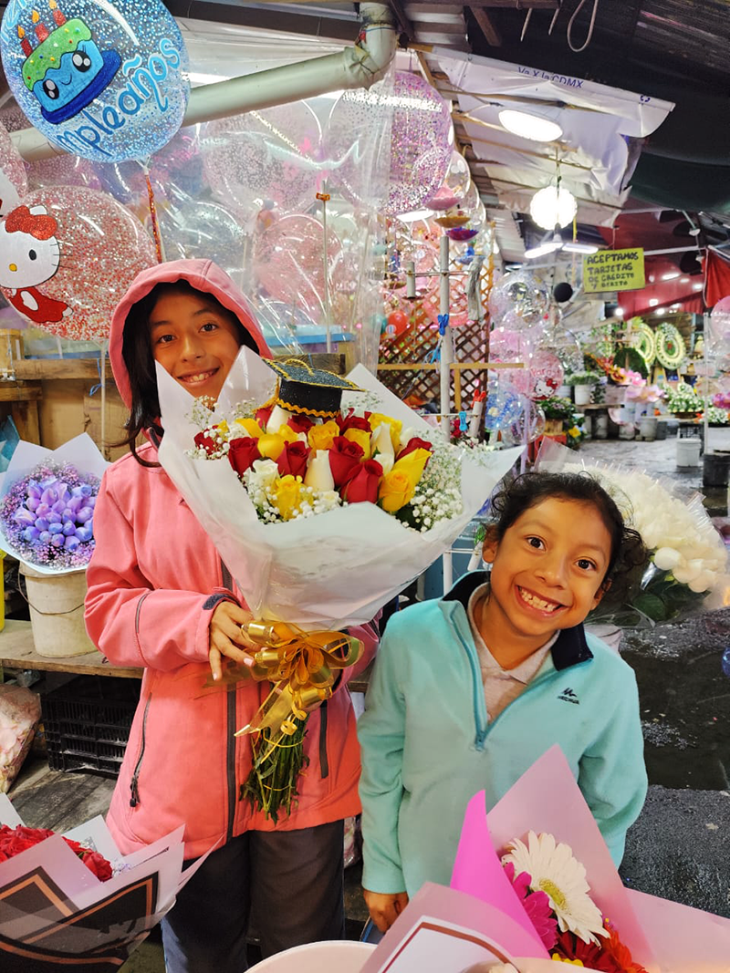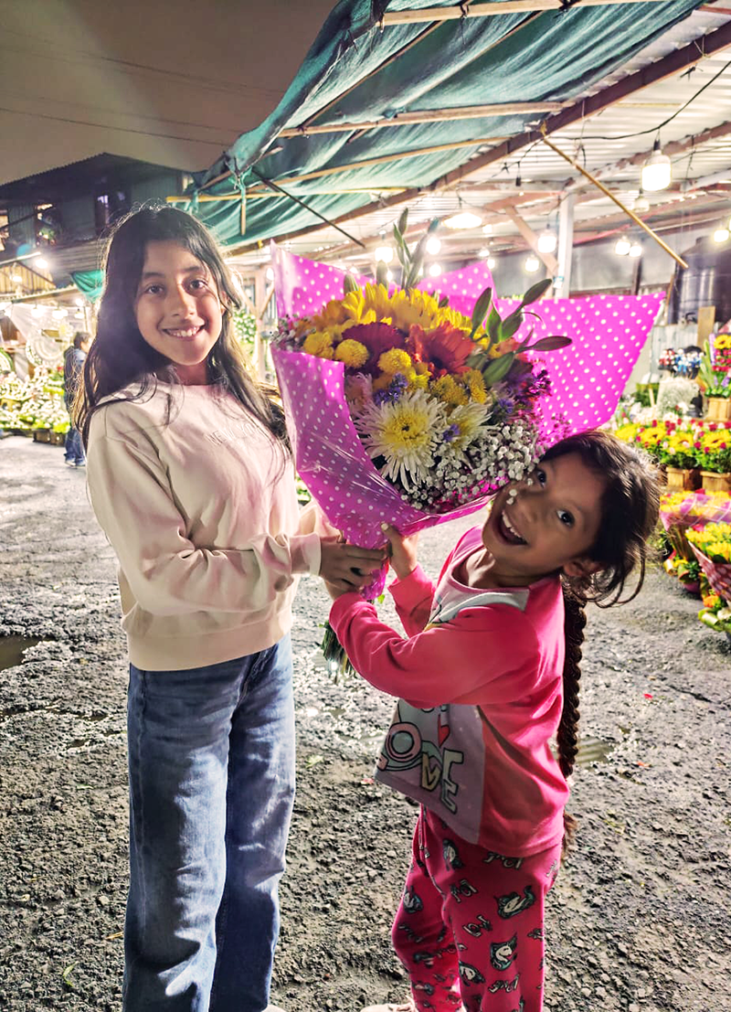 Mali y Rubí en el mercado de flores.