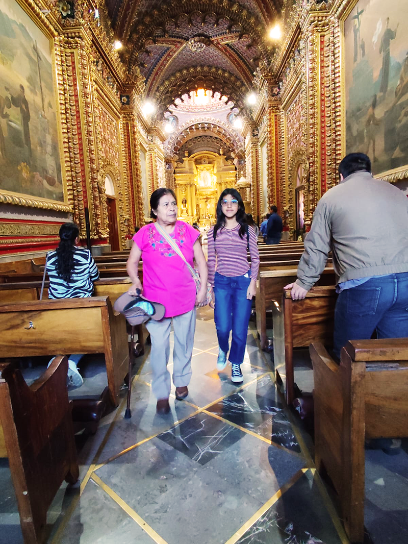Abuelita y Mali en el templo de San Diego, Morelia (2024).
