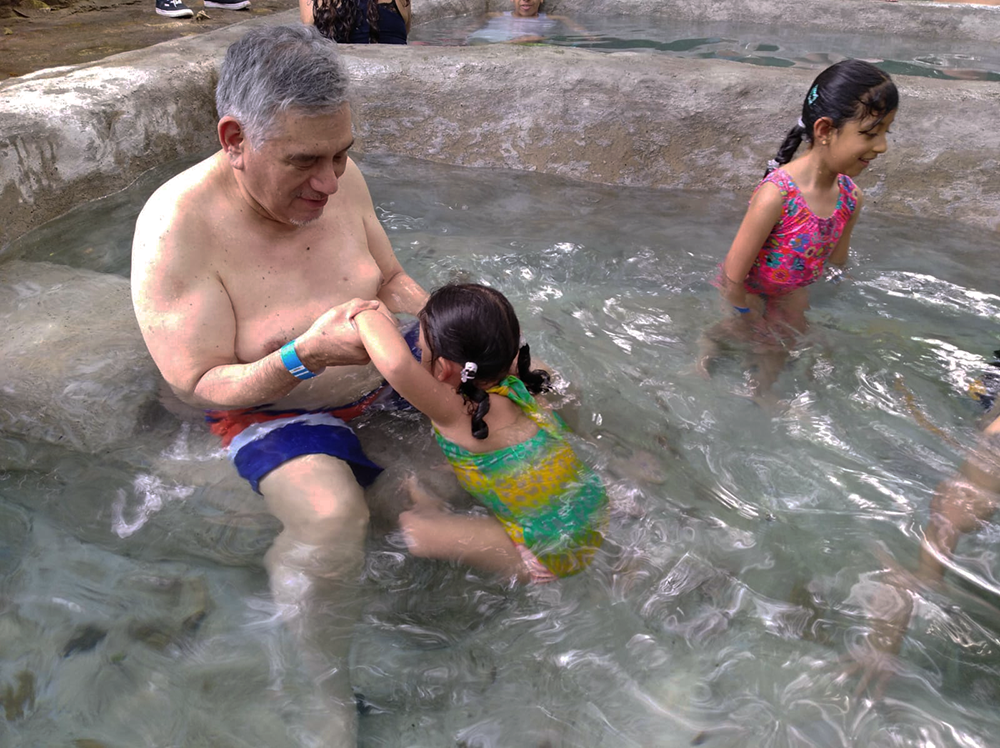 Pandarino y la niñas en parque de recreo cerca a Guayabitos (2019).