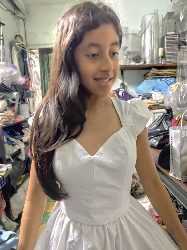 | 6. Mali probándose el vestido para su graduación (2024). |