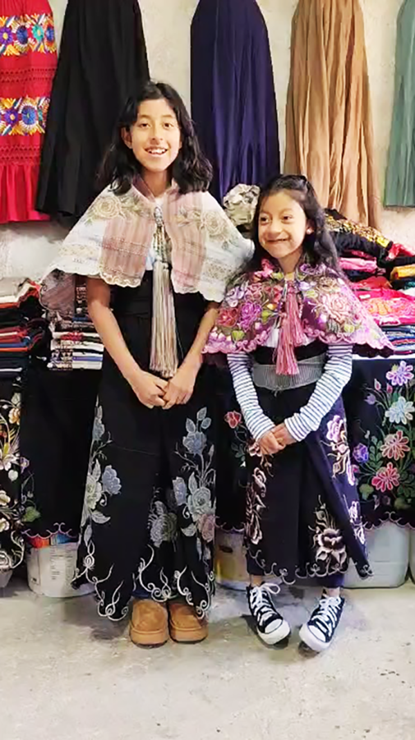 | 6. Mali and Rubi at store in Zinacantan, Chiapas, trying typical dresses, January 2025. |